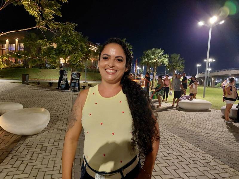 Assistente social Aline Tuanny, pretende "maratonar" os filmes. A assistente social Aline Tuanny, de 35 anos, também participou da primeira noite e descreveu a experiência como especial. “Foi muito emocionante, um momento único reunido com a família. Fazia tempo, inclusive, que a gente não tinha um momento parecido com esse, foi ótimo. A gente não tinha um lugar pra curtir, e agora temos o Parque Maguary, esse lugar especial. A gente pretende vir todos os dias 'maratonar' os filmes”, relatou.