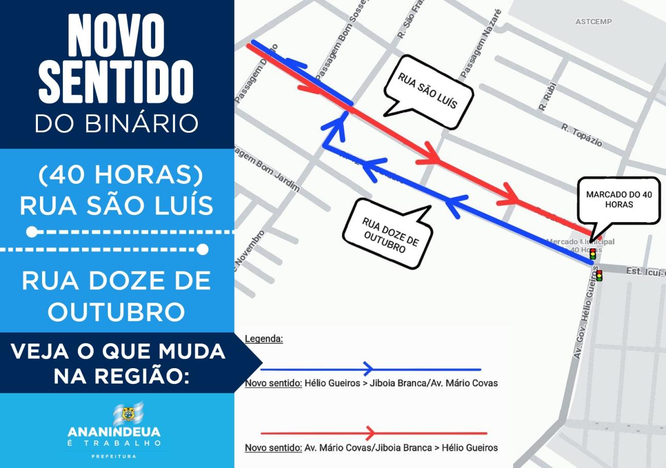 A partir desta segunda-feira, 28, as ruas São Luís e Doze de Outubro, localizadas no bairro 40 Horas, em Ananindeua, terão seus sentidos de tráfego alterados. Essa mudança faz parte de um projeto da Secretaria Municipal de Transporte e Trânsito (SEMUTRAN) visando melhorar a mobilidade urbana na região, que tem recebido um aumento significativo no fluxo de veículos provenientes da Avenida Mário Covas.