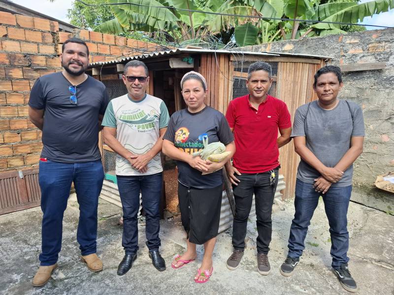 Maria Aldeize, beneficiária do projeto Aviário Ananin (PAFA), no bairro do Curuçambá.A equipe técnica da SEMUPA realizou, neste mês de maio, uma visita de monitoramento à moradora Maria Aldeize, beneficiária do projeto Aviário Ananin (PAFA), no bairro do Curuçambá. A visita ocorreu 60 dias após a entrega das aves, com o objetivo de acompanhar o desenvolvimento da criação e reforçar o apoio prestado pelo município às famílias atendidas pelo programa.