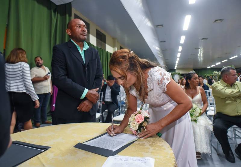 Titular da SEMCAT, Francy Pereira, "dignidade, inclusão e segurança".A secretária da SEMCAT, Francy Pereira, destacou que o casamento comunitário vai além da celebração — é um ato de transformação social. “Além da cerimônia, os casais saem daqui com a certidão de casamento nas mãos. Isso representa dignidade, inclusão e segurança. A formalização da união garante direitos, acesso a benefícios e fortalece os vínculos familiares. Isso é política pública feita com amor, feita com o coração.”
