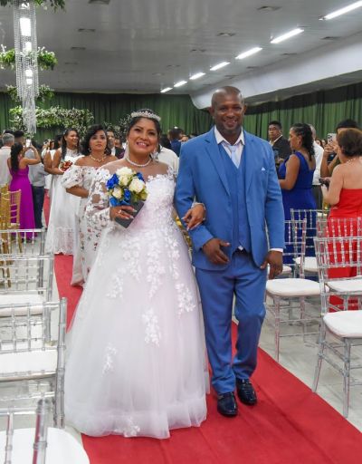 Dona Edilair Marivalda, ao lado do agora marido Raimundo Guedes.“Hoje é o dia mais feliz da minha vida. Esperei 40 anos por esse sonho, a oficialização da nossa união. Hoje, eu disse ‘sim’ para o amor da minha vida, diante de Deus, da minha família e de toda Ananindeua.” A voz embargada de Dona Edilair Marivalda, ao lado do agora marido Raimundo Guedes, resume perfeitamente o sentimento que tomou conta do grande salão, cuidadosamente decorado para o casamento comunitário promovido pela Prefeitura de Ananindeua, na sexta-feira, dia 23 de maio, no SESI Ananindeua.