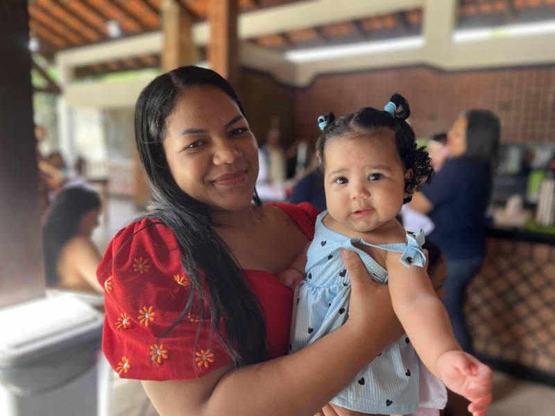 Jamires Rodrigues, mãe do pequeno Vinícius, de 7 meses.“Eu tinha muito medo de começar a dar comida pro meu bebê. Medo de ele engasgar, de não estar fazendo certo. Hoje eu saio daqui muito mais confiante, sabendo que é possível oferecer comida de verdade, que faz bem e que cabe no nosso orçamento”, contou Jamires Rodrigues, mãe do pequeno Vinícius, de 7 meses.