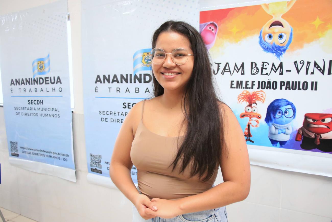 Hamanda Matos, Coordenadora de politicas públicas para pessoas com deficiência da SECDH.Durante a atividade, a coordenadora de políticas públicas para pessoas com deficiência da SECDH, Hamanda Matos, ressaltou que a formação é essencial para fortalecer o respeito dentro da comunidade escolar.