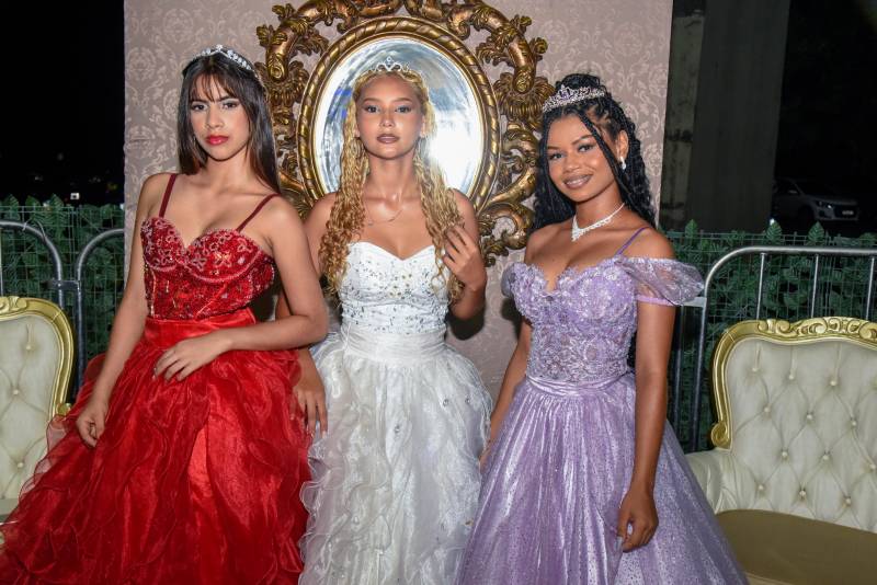 Debutante Juliana Cristina, "só gratidão".Também emocionada, Eliana do Socorro, mãe da debutante Juliana Cristina, a carinhosa Juju, agradeceu. “Estou muito feliz, tudo está perfeito, um sonho! Só gratidão à Prefeitura por fazer uma festa tão linda para nossas meninas.”