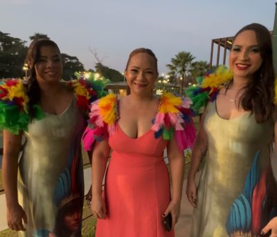 Professoras da UEI Pequenos Ananis, Marilia Santos, Helen Habringel e Daniele Lima.O espetáculo foi concebido de forma colaborativa e contou com a participação das coordenadoras Marília Santos (Pré II) e Daniele Lima (Pré I), que lideraram o processo criativo junto às professoras. Cada turma adotou um mascote inspirado na fauna local, e juntos, os pequenos deram vida a uma narrativa envolvente, que percorreu as cores, sons e símbolos de Ananindeua.