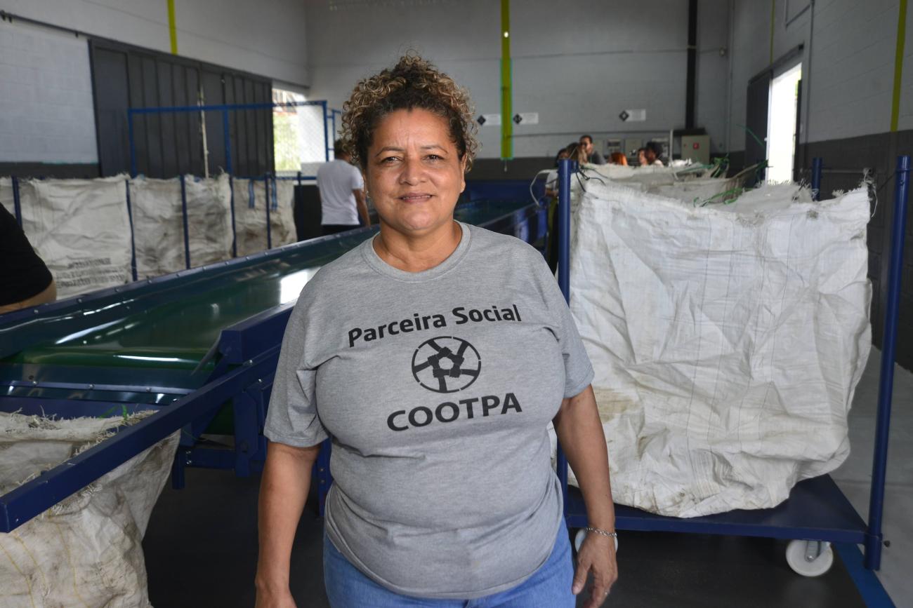 Noêmia do Nascimento, presidente da Cootpa. A Cootpa, que já atua há mais de dez anos em Ananindeua com coleta seletiva porta a porta em nove bairros, ganhou uma nova sede. A presidente da cooperativa, Noêmia do Nascimento, celebrou a parceria. "Com a vinda da franquia da Ambipar e com essas parcerias que a gente está formando, a nossa expectativa é a melhor possível. É uma oportunidade da gente se profissionalizar e melhorar nosso trabalho cada vez mais", declarou Nôemia.