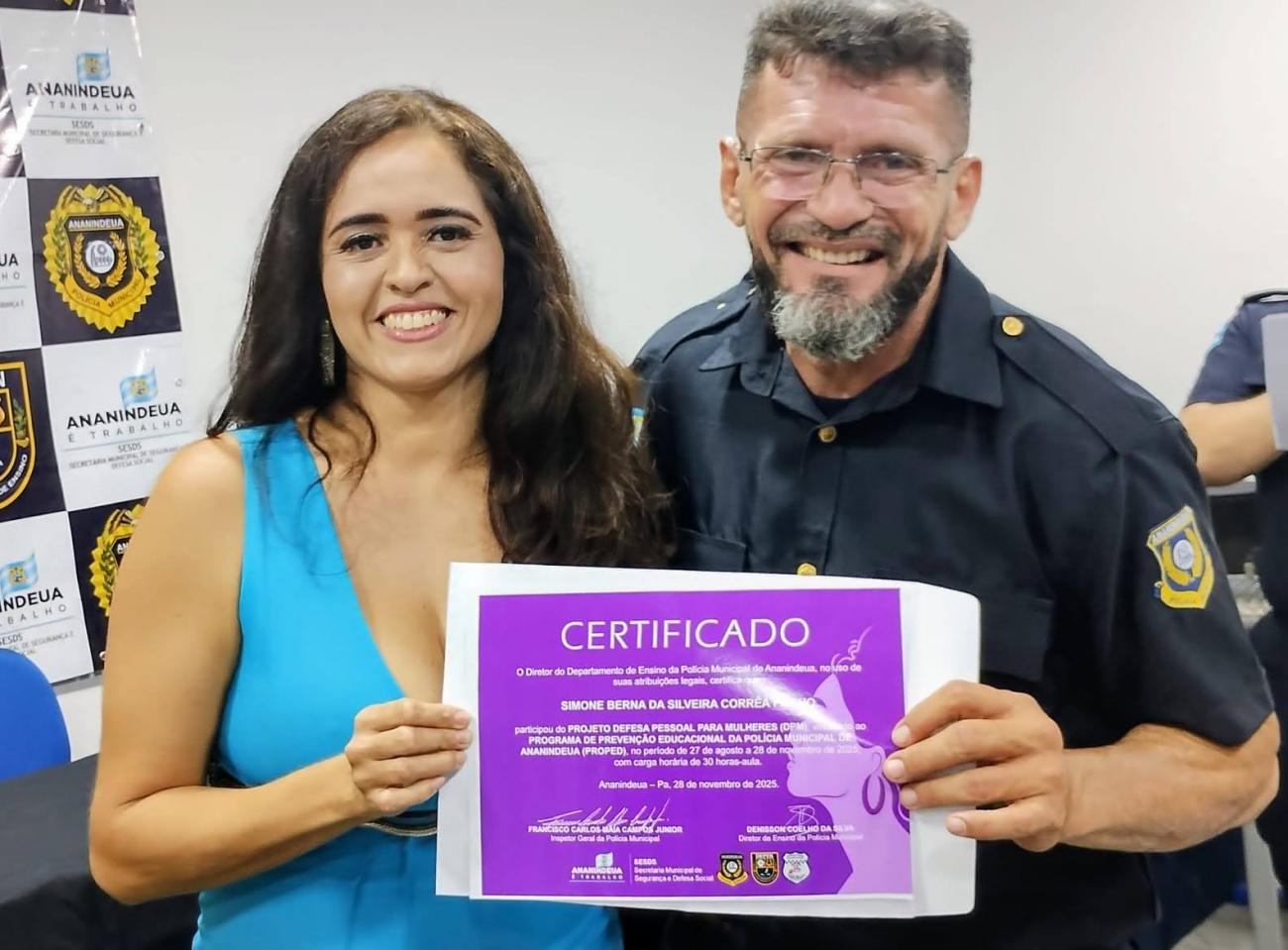 Curso “Defesa Pessoal para Mulheres”.Na última sexta-feira (28), a Prefeitura de Ananindeua, por meio da Secretaria Municipal de Segurança e Defesa Social (SESDS), celebrou a formatura de mais uma turma do curso “Defesa Pessoal para Mulheres”, promovido pelo Departamento de Ensino da Polícia Municipal (DEPEN).