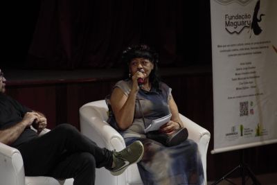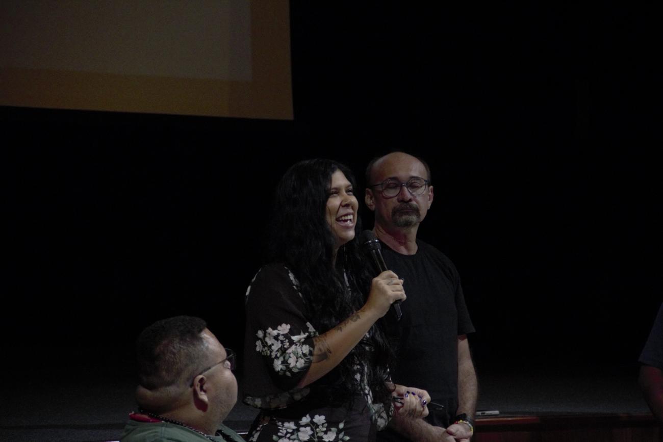 Célia Maracajá, diretora do curta “Quem Quer?”.Dando continuidade à programação, o público acompanhou a exibição especial do curta-metragem “Quem Quer?”, dirigido por Célia Maracajá e roteirizado por Poraquê Munduruku. Após a sessão, foi realizado um debate aberto, no qual os realizadores compartilharam reflexões sobre identidade indígena, território, representatividade e o enfrentamento ao preconceito por meio do audiovisual.