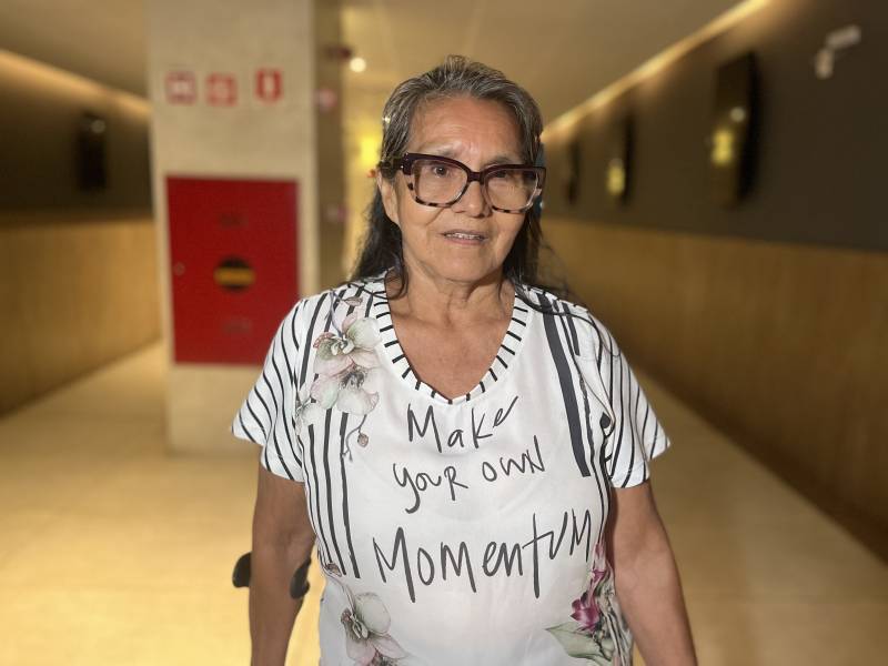 Dona Januária Monteiro Santana, acompanhada pelo CRAS do Distrito Industrial.“Eu gosto muito de sair, de passear, das programações que o CRAS oferece. Passei por um acidente e tenho um pouco de dificuldade, mas quando dá eu gosto de sair, porque me sinto bem saindo de casa, com as minhas colegas, a gente vai se conectando. Isso é muito bom. Gostei muito de vir hoje ao cinema”, contou dona Januária Monteiro Santana, acompanhada pelo CRAS do Distrito Industrial.