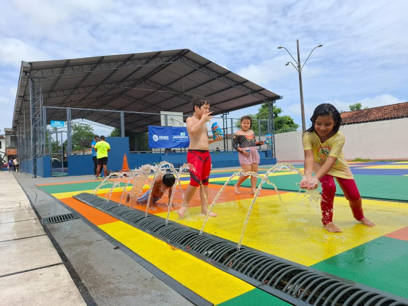 A "Caravana no Esporte" é diversão e alegria.A pequena Ana Tereza Teixeira, de 7 anos, também aproveitou cada momento. Entre brincadeiras, banho na fonte interativa e encontros com os amigos, ela resumiu o sentimento do dia: diversão e alegria.