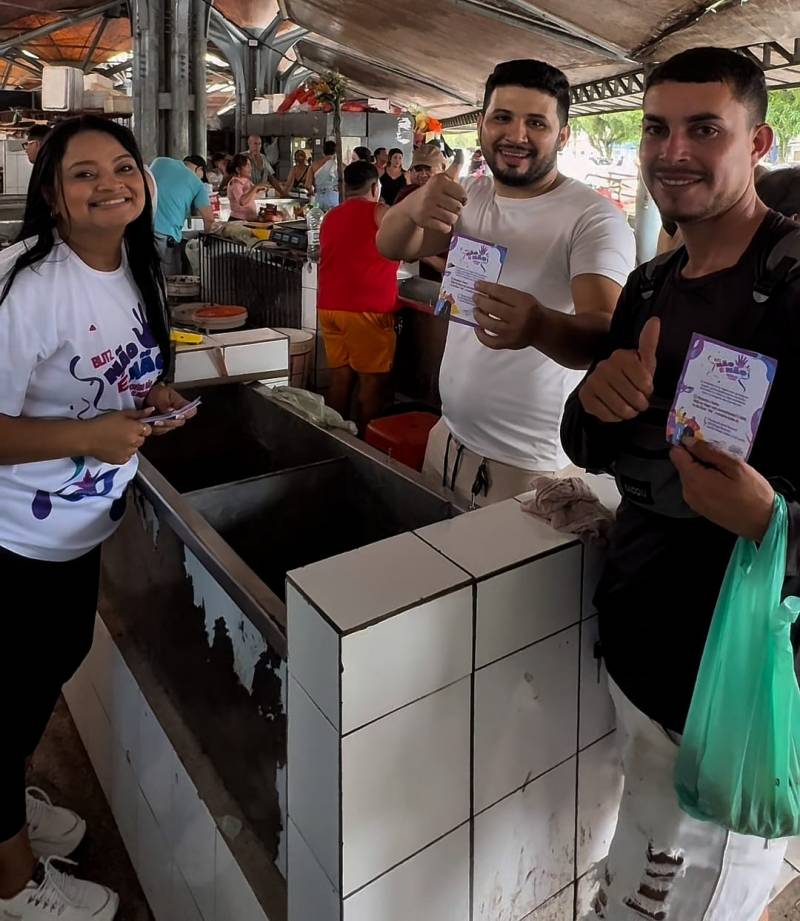 Equipe técnica municipal da Casa da Mulher Brasileira (CMB) na campanha “Não é Não”.Com a chegada do Carnaval, a equipe técnica municipal da Casa da Mulher Brasileira (CMB), intensificou as ações de conscientização sobre o respeito às mulheres e o combate ao assédio. No sábado, 07, as colaboradoras da CMB estiveram na Avenida Arterial 18 e na feira coberta da Cidade Nova IV, realizando panfletagem e orientações à população.