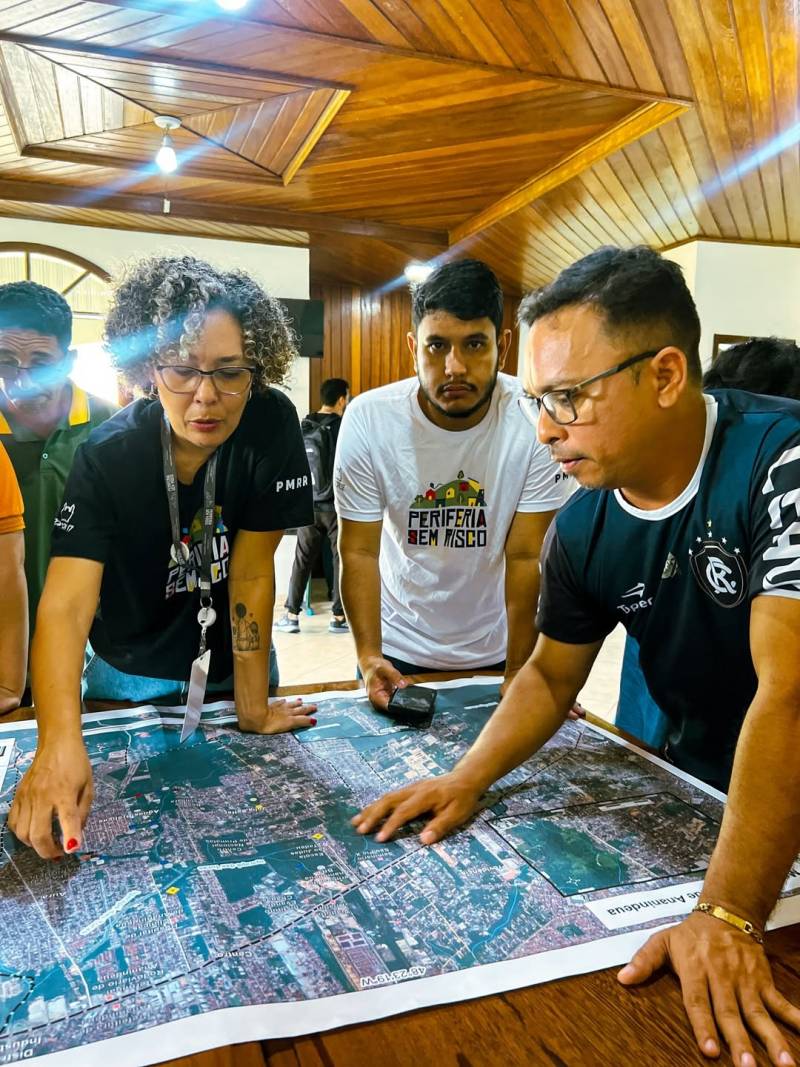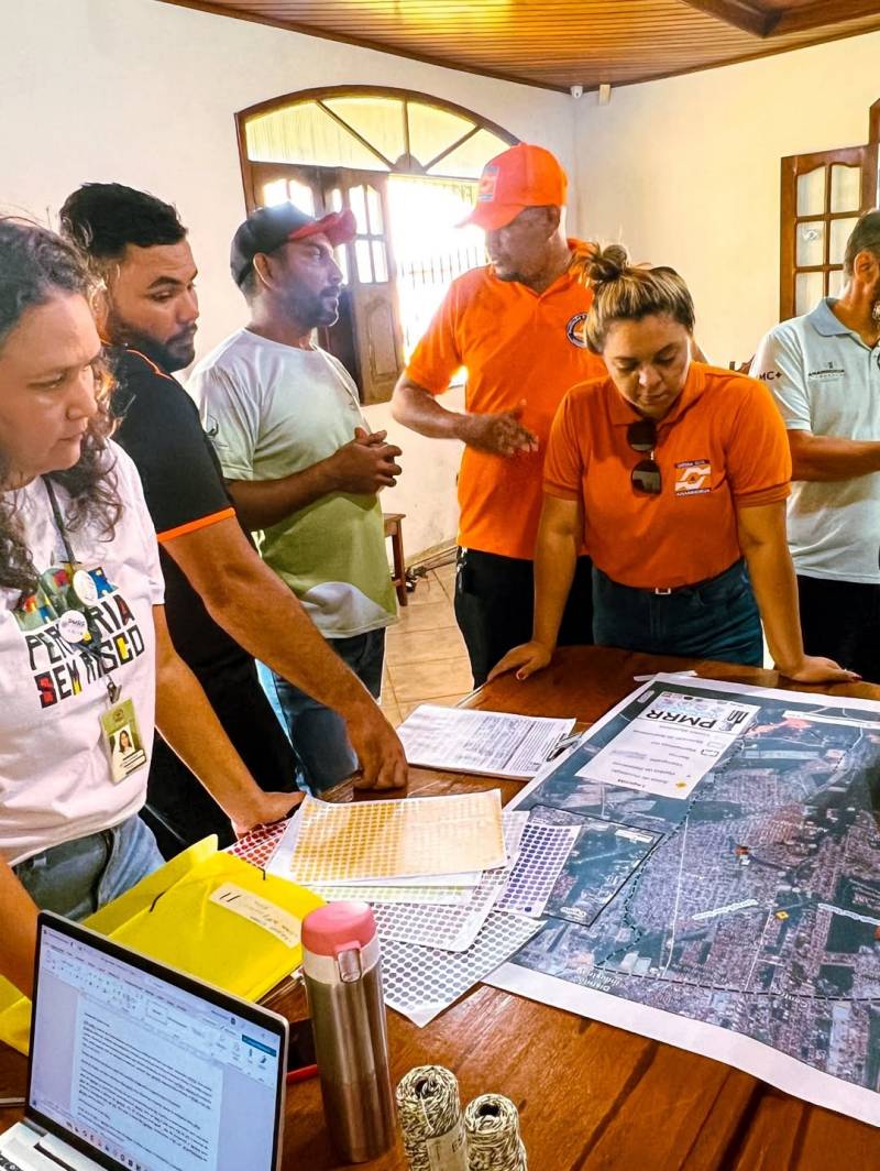 Mapeamento sendo realizado em Ananindeua.A Prefeitura de Ananindeua deu mais um passo importante na construção de políticas públicas voltadas à prevenção de desastres. No último sábado(11), no Conjunto Julia Seffer, equipes da Secretaria de Enfrentamento às Mudanças Climáticas (SEMC+), da Secretaria Municipal de Proteção e Defesa Civil (SEPDEC) e da Universidade Federal Rural da Amazônia (UFRA) realizaram uma ação de mapeamento participativo com lideranças comunitárias da região sul do município.