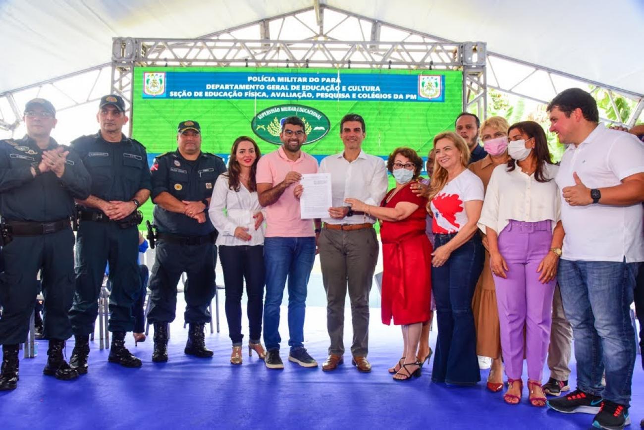 Nesta segunda feira, 02, na Escola Municipal de Ensino Fundamental Padre Pietro Gerosa, localizada no bairro do Aurá, a prefeitura de Ananindeua deu o primeiro passo para a implantação da primeira escola Cívico Militar do município, em parceria com o Governo do Estado. Um Termo de Cooperação Técnica entre a Secretaria Municipal de Educação (Semed) e a Polícia Militar do Pará foi assinado pelo Prefeito de Ananindeua, Dr. Daniel Santos, o Governador do Estado, Helder Barbalho; a Secretaria de Educação, Leila Freire; e o Comandante da PM, Dilson Jr.