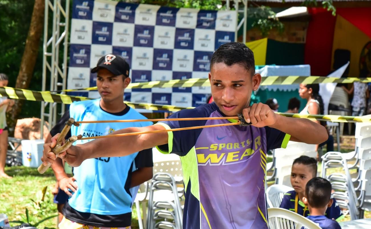 Secretário de Esporte, Lazer e Juventude, Jami Leitte, premia vencedoras de competição“Mesclamos as modalidades, conforme a cultural local, além do esporte convencional, tivemos modalidades que foram esportivizadas pelos próprios moradores, como por exemplo, a subida no açaizeiro, o tiro ao alvo com baladeira, o pau de sebo, a queimada e o dominó”, explicou Jami Leite.