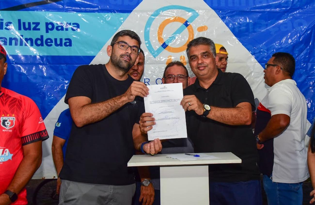 Na noite da segunda-feira, 27, o Prefeito Dr. Daniel Santos, com vereadores de Ananindeua, assinaram a Ordem de Serviço que garante a modernização da iluminação pública das vias do Jaderlândia, Atalaia, Francisquinho e Santa Marta. Ao todo, serão trocadas 2.150 lâmpadas a vapor para LED.
