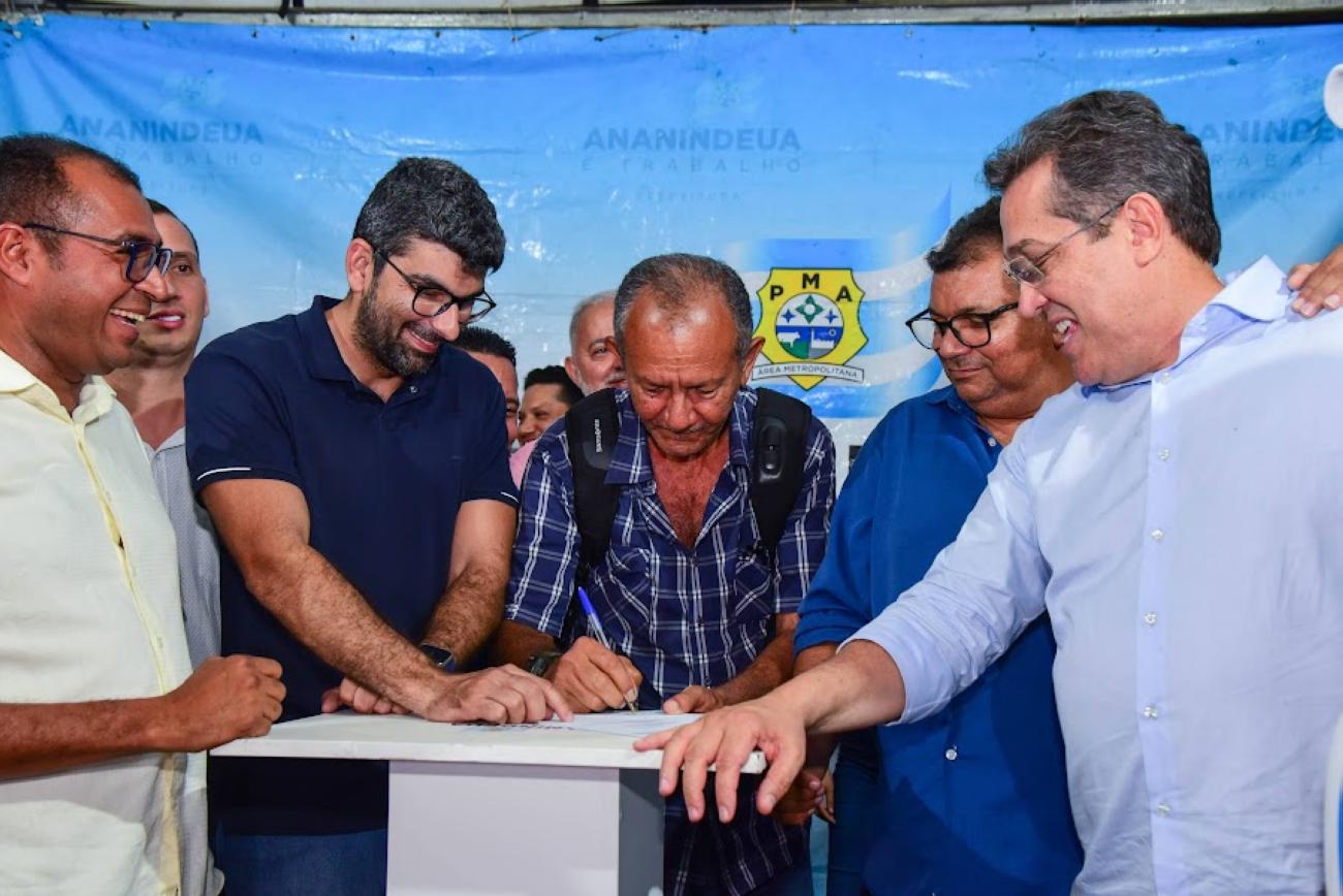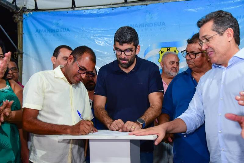 A Prefeitura de Ananindeua, por meio da Secretaria de Saneamento e Infraestrutura (SESAN), promoveu na noite desta segunda-feira (03), no Curuçambá, uma solenidade de assinatura da Ordem de Serviço de infraestrutura em diversas ruas do bairro. O evento contou com a presença do prefeito Dr. Daniel Santos, vereadores, lideranças comunitárias e moradores locais, que fizeram questão de participar do anúncio das obras.