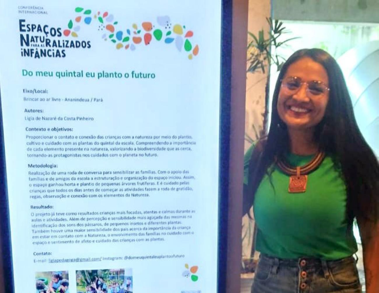 Com o projeto “Do meu quintal eu planto o futuro”, a professora Lígia Pinheiro, da Rede Municipal de Ensino de Ananindeua, viajou para São Paulo e expôs na Conferência Internacional Espaços Naturalizados para as Infâncias entre os dias 20 e 23 de Setembro. Foi a primeira vez que um país da América Latina sedia a conferência.