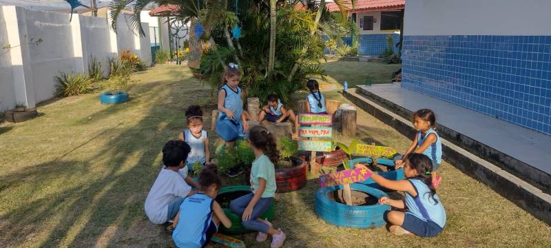 “Proporcionar o contato e conexão das crianças com a natureza por meio do plantio, cultivo e cuidado com as plantas do quintal da escola. Compreendendo a importância de cada elemento presente na natureza, valorizando a biodiversidade que as cerca, tornando-as protagonistas nos cuidados com o planeta no futuro”, assim é descrito o contexto e objetivos do projeto do “Meu quintal eu planto o futuro” pela professora Lígia Pinheiro.