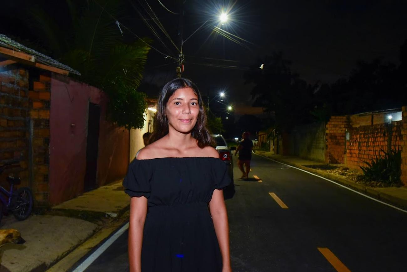 Renata Alice, auxiliar de professora.Renata Alice, 35 anos, moradora da Rua Décima Quinta há cerca de 27 anos, auxiliar de professora, falou sobre o sentimento de ter a rua asfaltada pela primeira vez”. O sentimento é de muita felicidade, nunca vimos asfalto, e receber é uma benção, porque aqui enchia de água e fica intrafegável, pra chegar na minha casa precisava dar o balão, as dificuldades eram muitas, a gente penava”, disse a a moradora.