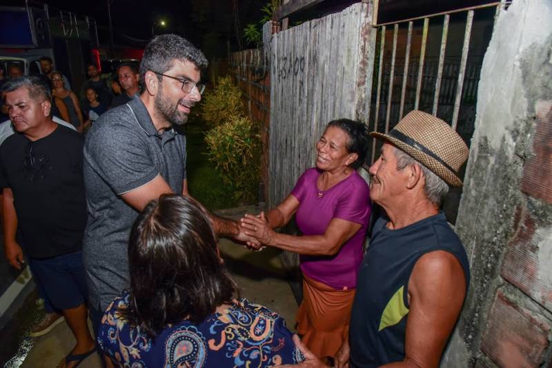 Prefeito de Ananindeua, Dr. Daniel Santos ouvindo a comunidade.No ato inaugural o prefeito e demais autoridades fizeram uma caminhada pelas duas ruas, para inclusive escutar os anseios da população, os moradores fizeram questão de acompanhar e no meio da caminhada aplaudiram, cantaram e falavam sobre a felicidade de não mais ter que sujar os pés.