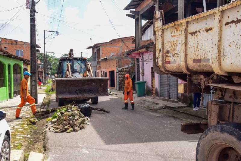 A ação ocorreu em várias ruas da comunidade e beneficiou os moradores locais, que puderam retirar os entulhos de suas residências para serem coletados pelos agentes de limpeza.
