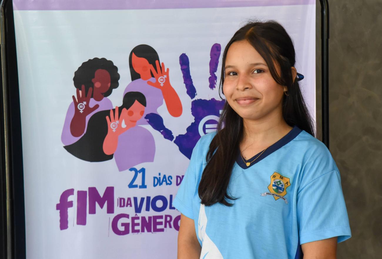 A estudante Ana Isabella Lima.A estudante Ana Isabella Lima, de 15 anos, do 9.º ano da EMEF Padre Gabriel Bulgarelli, esteve no evento e compartilhou suas experiências sobre o tema. "Hoje, ao assistir à palestra, percebi que já vivi uma situação de violência de gênero. Isso aconteceu porque, ao tentar seguir uma profissão, a sociedade achava que era algo que apenas os homens poderiam fazer. O mais importante é que a mulher está conquistando seu espaço e seu reconhecimento na sociedade", finalizou.