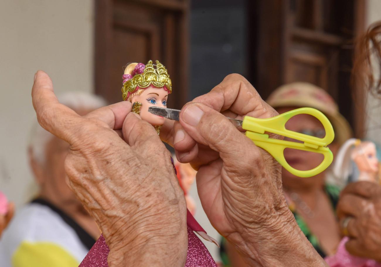 Dona Maria dos Remédios, "me sinto viva, importante".Dona Maria dos Remédios, de 80 anos, participou da oficina de artesanato e se emocionou ao falar sobre o momento.