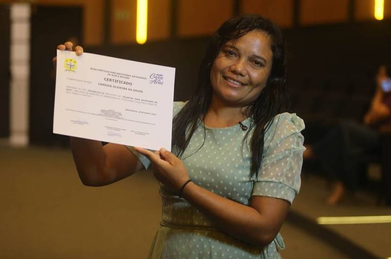 Claudivete Costa vai aplicar a qualificação para melhorar seu empreendimento. Entre os participantes está a dona Claudivete Costa, que destacou a importância da capacitação oferecida pela Prefeitura.