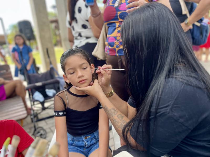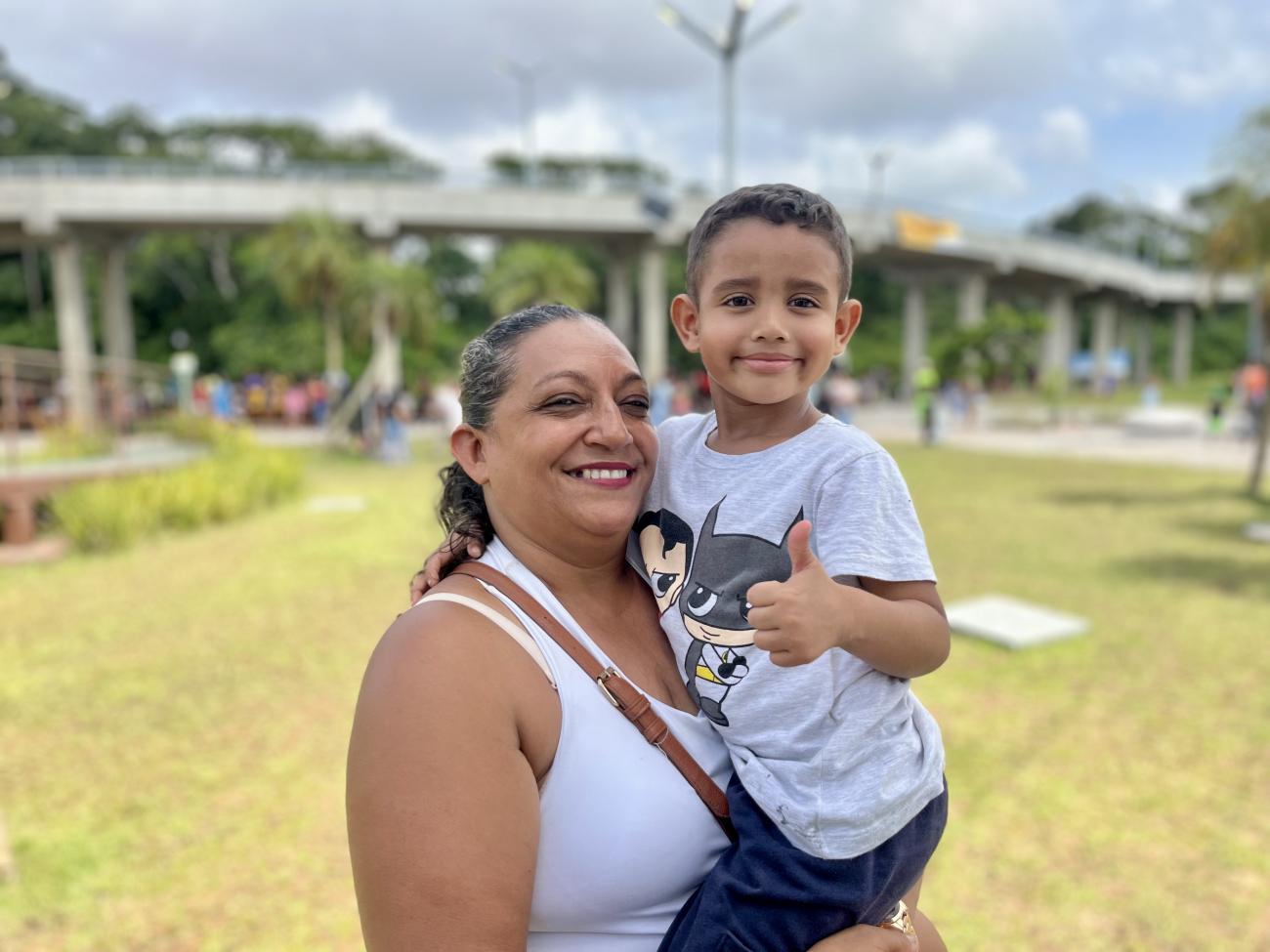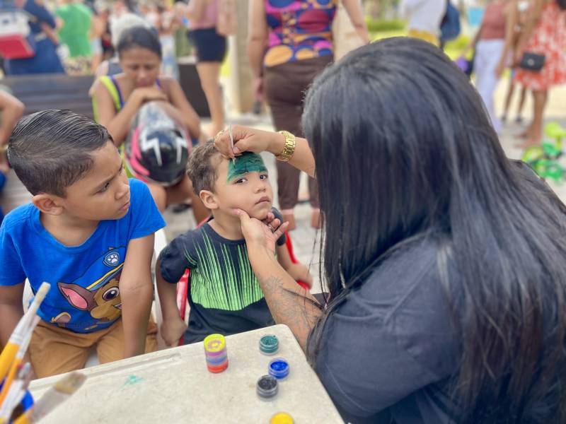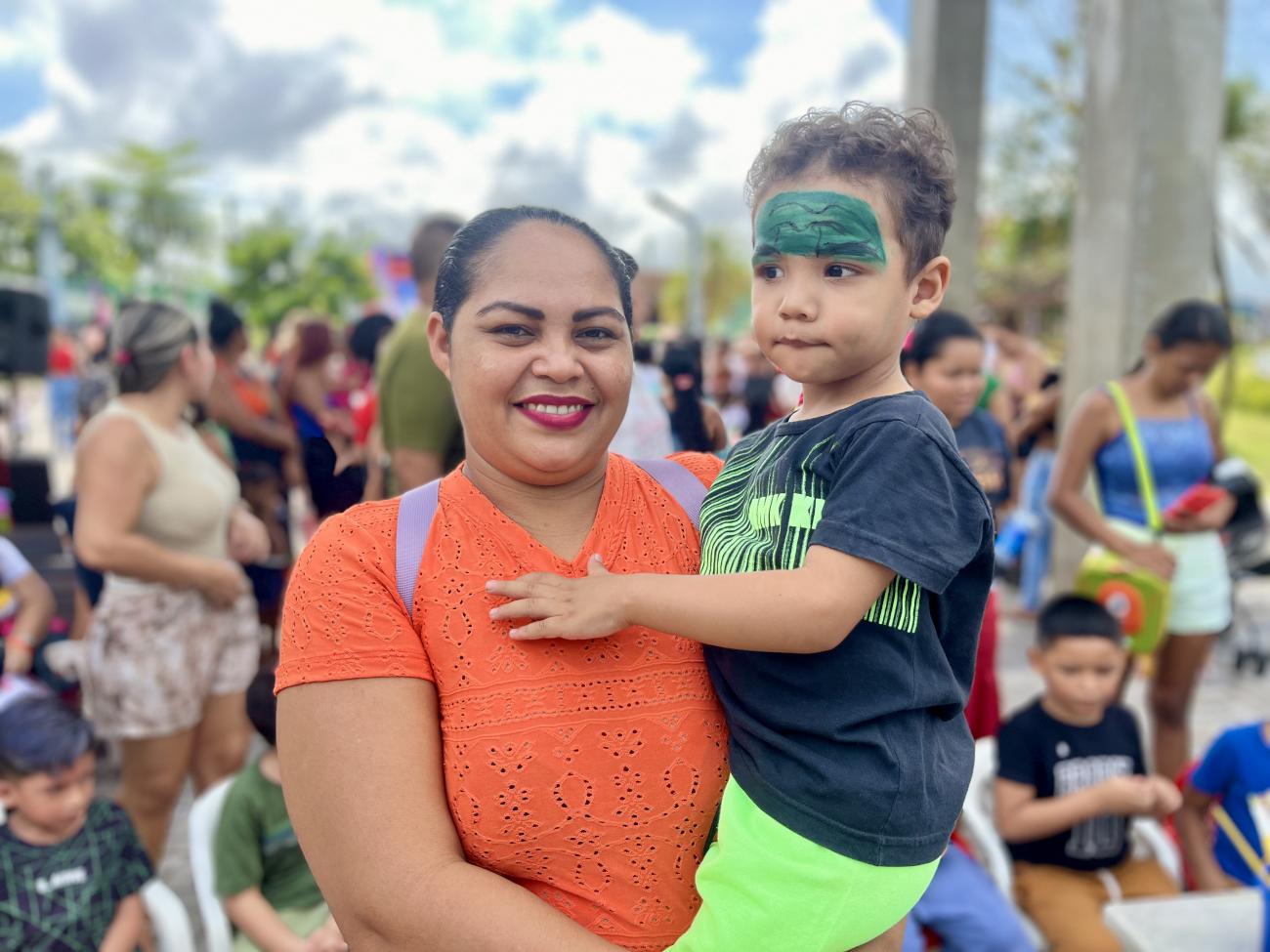 “A gente veio pra cá pra esse dia de lazer, brincar com ele. É uma alegria estar com meu filho. Ele está com a pintura do Hulk, que ele gosta muito. Está sendo um dia muito divertido. Obrigada à Prefeitura por proporcionar esse momento.”