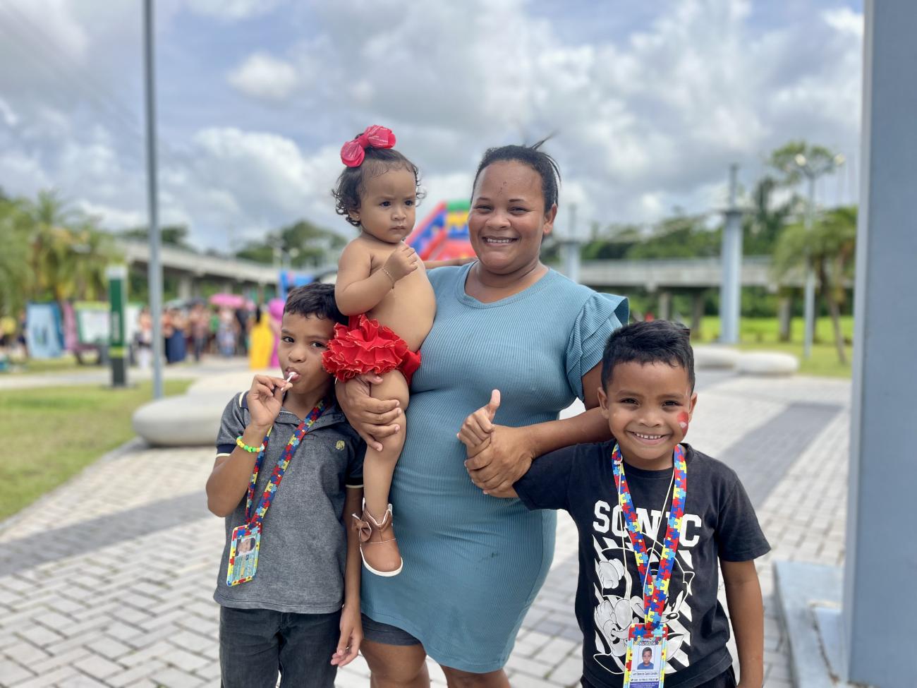 A dona de casa Luciane Barbosa, mãe de três crianças acompanhadas pelo CRAS.As famílias também destacaram a relevância do momento. A dona de casa Luciane Barbosa, mãe de três crianças acompanhadas pelo CRAS, sendo dois autistas, contou que o evento foi uma oportunidade de lazer e alegria.