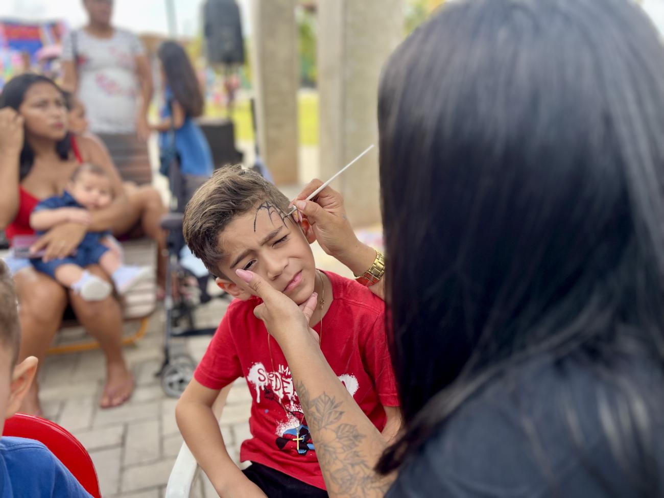 Durante a programação, as crianças participaram de diversas atividades recreativas e lúdicas, como pintura facial, pula-pula, torta na cara, gincanas e momentos de convivência, promovendo integração social e um ambiente de acolhimento.