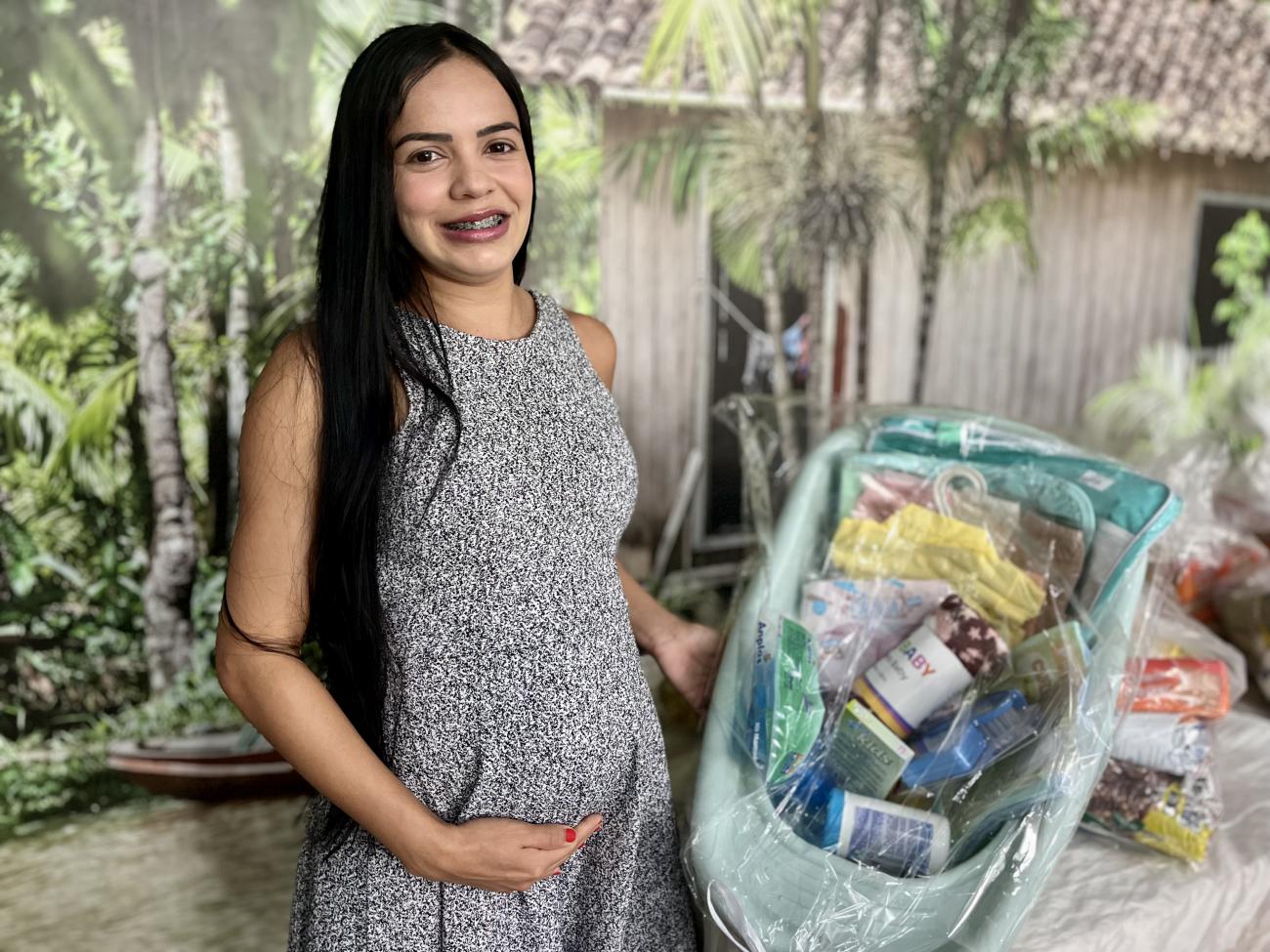 Sabrina de Souza, 31 anos, gestante de 8 meses.“Estou muito feliz e muito grata. No momento, estou desempregada, e esse enxoval vai me ajudar bastante. Algumas coisinhas eu ainda não tinha, então essa ajuda é essencial pra mim. Obrigada à Prefeitura de Ananindeua pelo carinho”, contou Sabrina de Souza, 31 anos, gestante de 8 meses e beneficiária do programa.