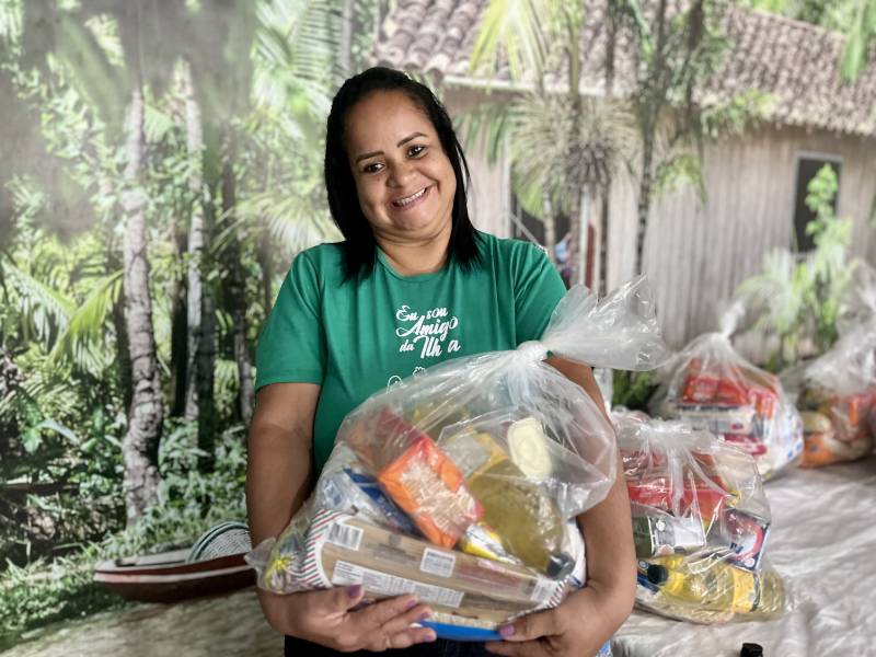 Cinthia Furtado, moradora da Ilha Igarapé Grande.“Esse apoio alimentar chegou na hora certa. Eu agradeço muito à Prefeitura de Ananindeua. A gente estava passando por dificuldades”, contou Cinthia Furtado, moradora da Ilha Igarapé Grande, na Comunidade João Pilatos, e uma das beneficiadas pela ação.