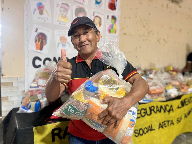 José Ribamar, "apoio alimentar em boa hora".Já seu José Ribamar, contou que o apoio alimentar chegou em boa hora. “Tô muito feliz em estar recebendo essa cesta, ela chegou em boa hora. Só tenho que agradecer a toda a equipe da Assistência Social, ao CRAS.”