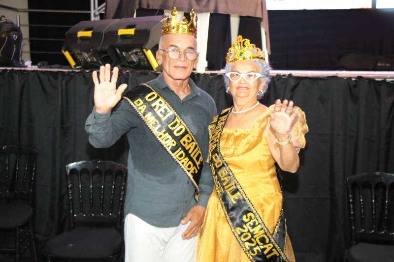 Rei e da Rainha do Baile, Raimundo Fernandes e Maria Magalhães.O ponto alto da noite ficou por conta da escolha do Rei e da Rainha do Baile. O público vibrou com cada anúncio. Seu Raimundo Fernandes foi coroado Rei, exibindo simpatia e leveza, enquanto Dona Maria Magalhães, carismática e cheia de energia, foi escolhida Rainha do Baile 2025.