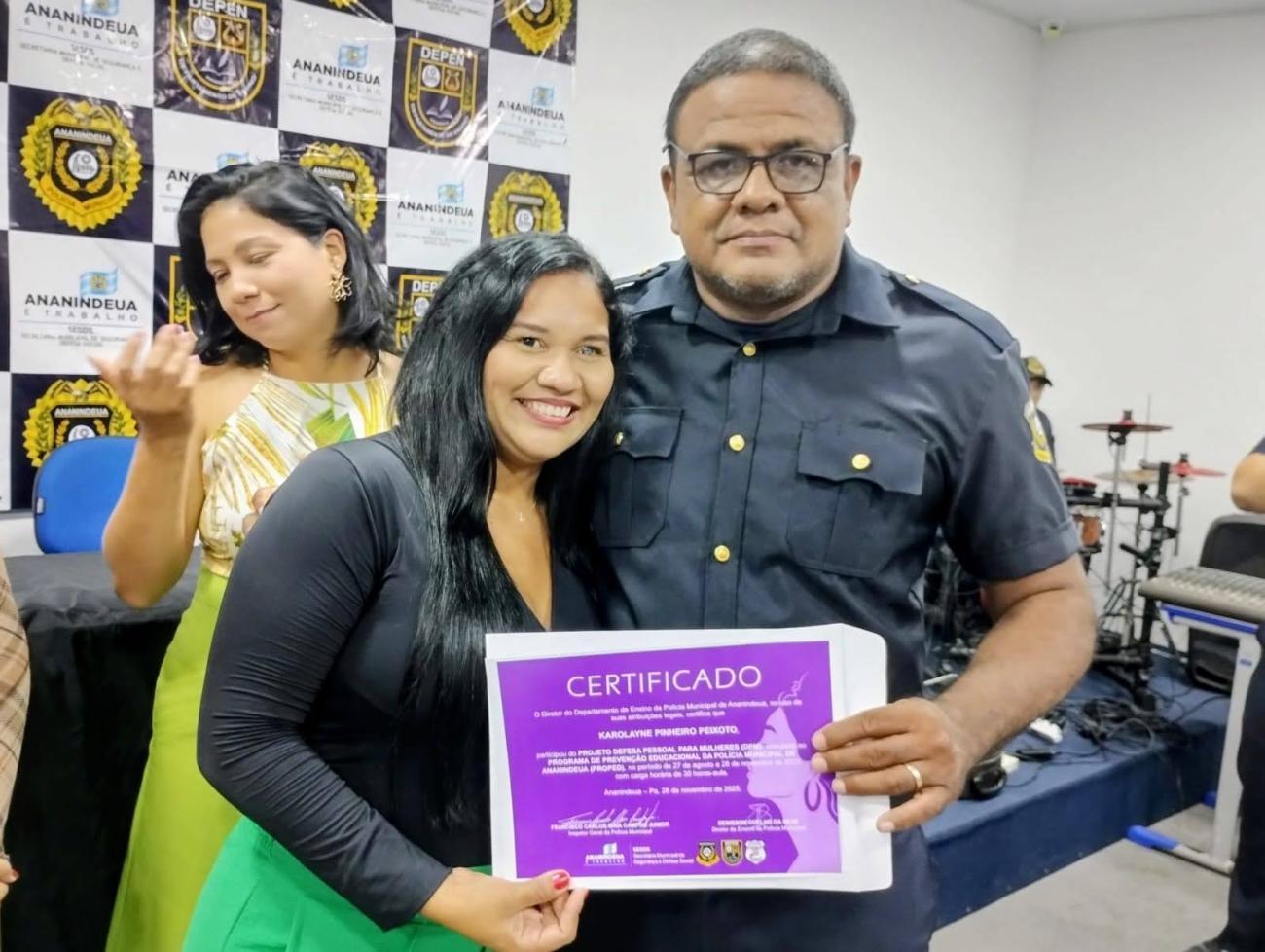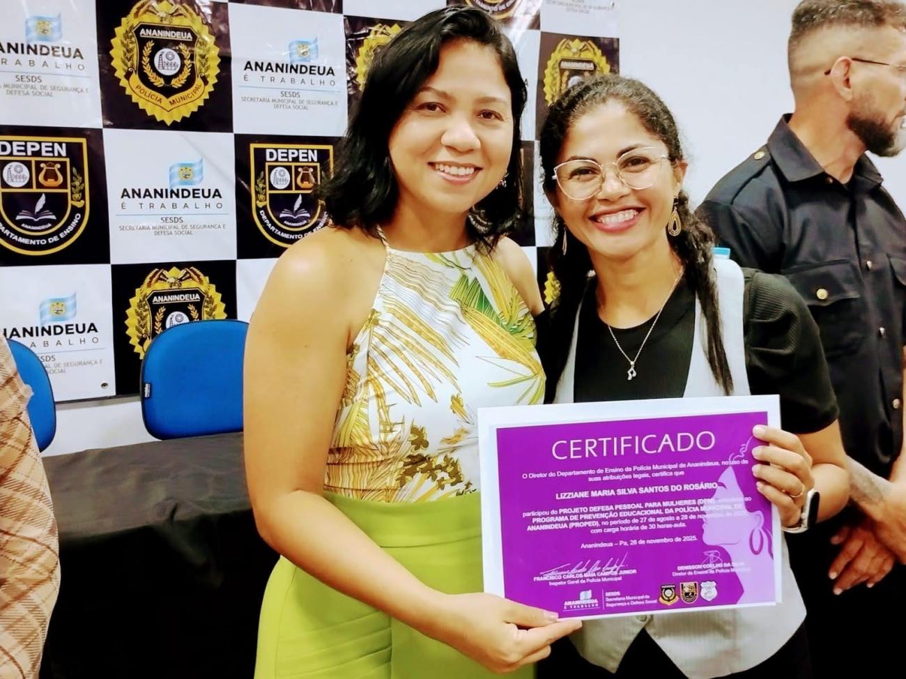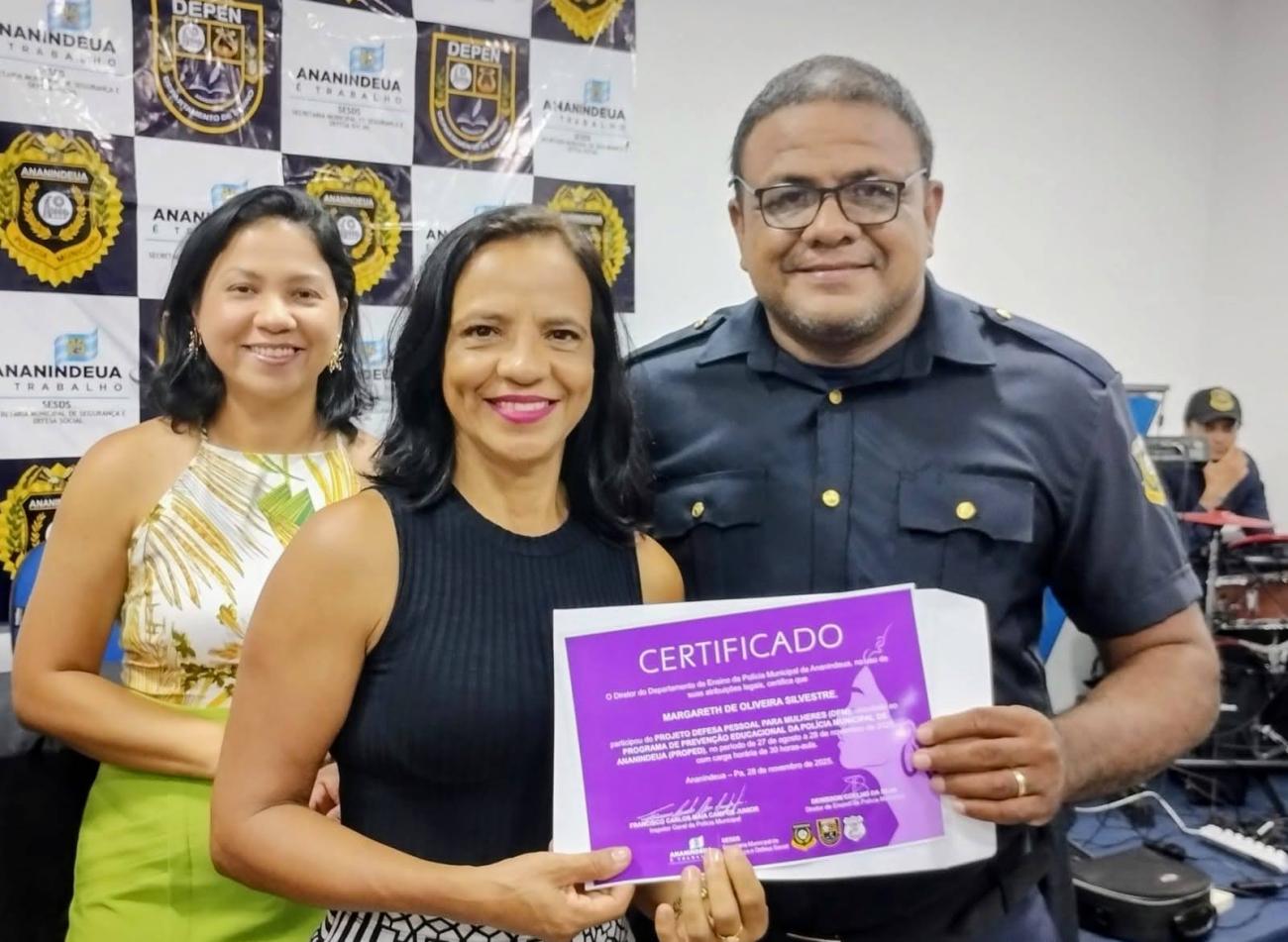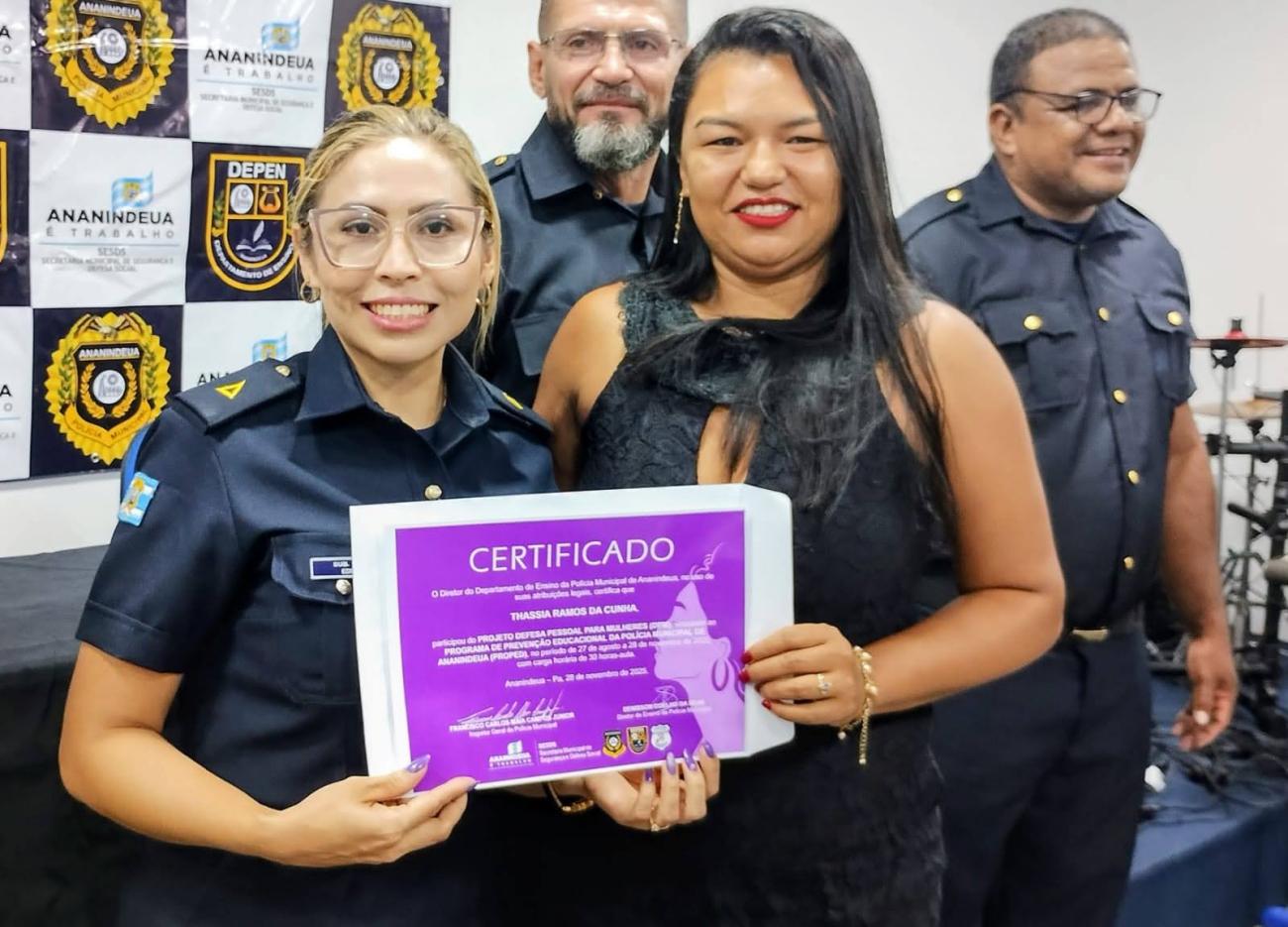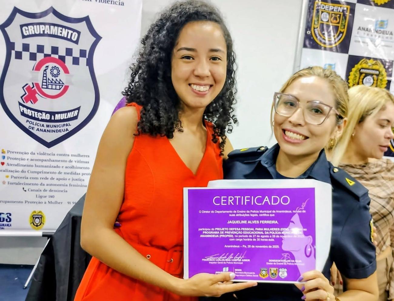 Curso “Defesa Pessoal para Mulheres”.Na última sexta-feira (28), a Prefeitura de Ananindeua, por meio da Secretaria Municipal de Segurança e Defesa Social (SESDS), celebrou a formatura de mais uma turma do curso “Defesa Pessoal para Mulheres”, promovido pelo Departamento de Ensino da Polícia Municipal (DEPEN).