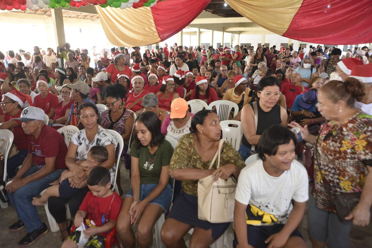 Programação natalina promovida pela Prefeitura de Ananindeua.Mais de 1.500 pessoas, entre crianças, adultos e idosos, participaram da programação natalina promovida pela Prefeitura de Ananindeua, por meio da Secretaria Municipal de Cidadania, Assistência Social e Trabalho (SEMCAT), voltada às famílias acompanhadas pelos CRAS e CREAS. O evento, que ocorreu nesta segunda-feira, 22, transformou o fim de ano em um Natal encantado, marcado por música, acolhimento e solidariedade.