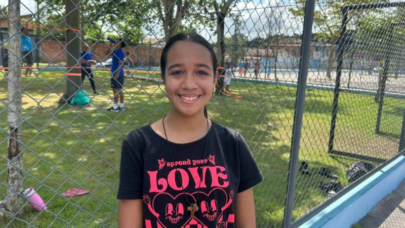 Participante da ação, Isabela da Costa, de 11 anos.A experiência também é aprovada pelos participantes. Para Isabela da Costa, de 11 anos, o projeto representa diversão e aprendizado. “Eu gosto de vir porque a gente faz esporte, brinca e aprende coisas novas. Aqui dá pra se divertir e fazer amigos”, afirmou.