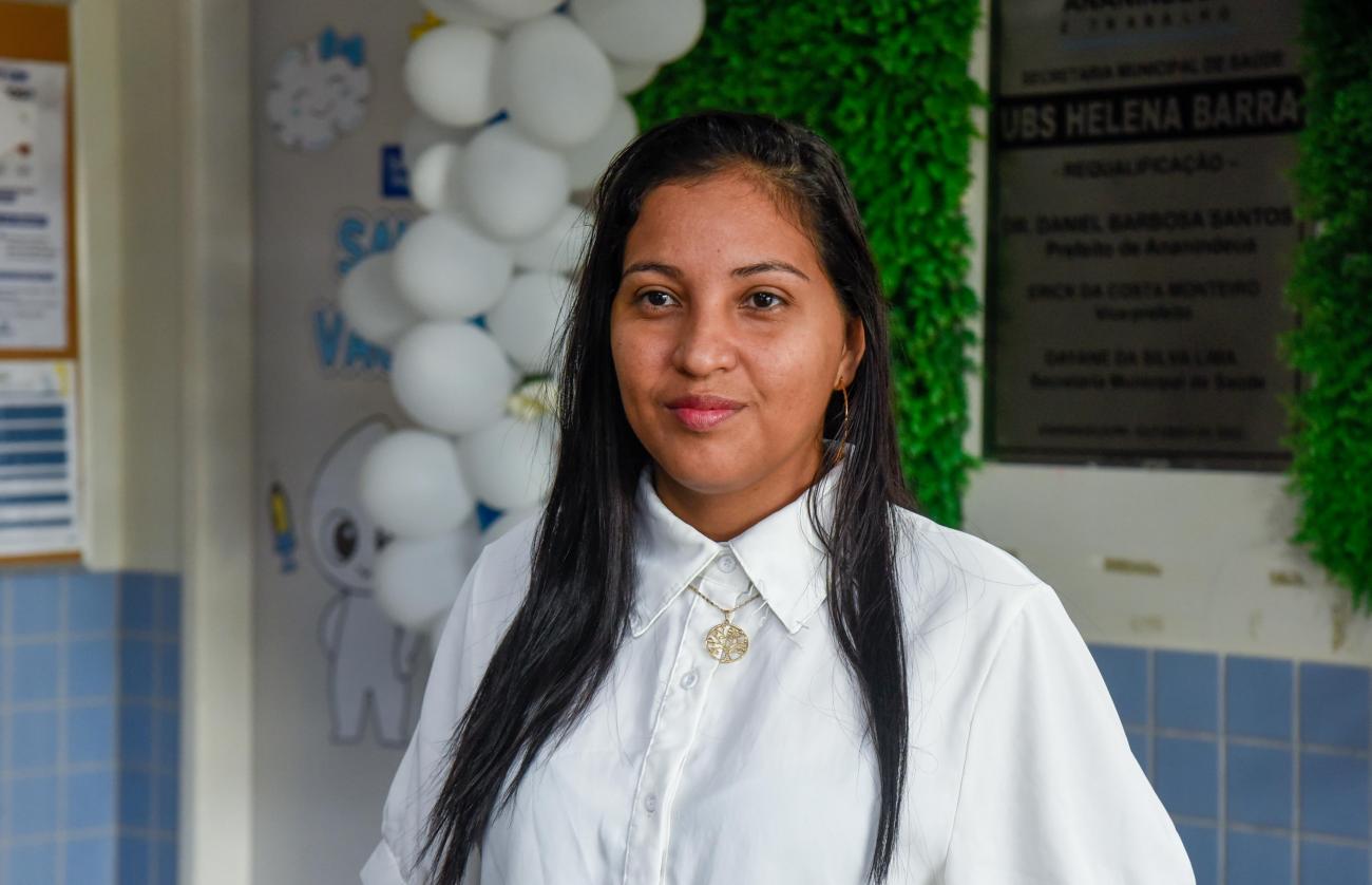 Gestora Laiana Ferreira, da UBS Helena Barra.Neste sábado (31), a unidade registrou grande procura da população. A gestora da UBS Helena Barra destacou a importância do programa para atender quem não consegue cuidar da saúde durante a semana.