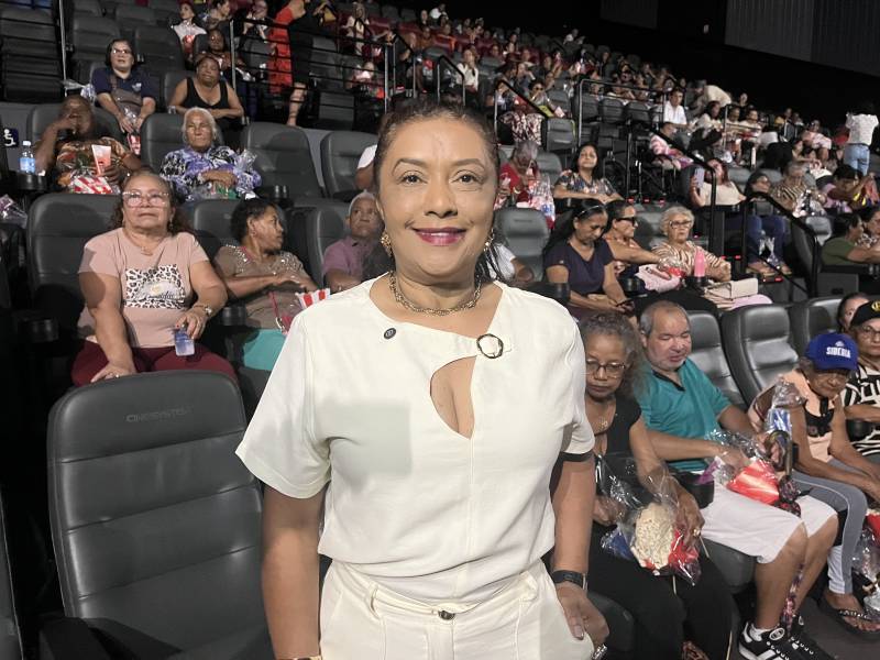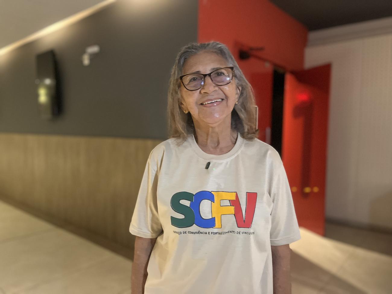Dona Januária Monteiro Santana, acompanhada pelo CRAS do Distrito Industrial.“Eu gosto muito de sair, de passear, das programações que o CRAS oferece. Passei por um acidente e tenho um pouco de dificuldade, mas quando dá eu gosto de sair, porque me sinto bem saindo de casa, com as minhas colegas, a gente vai se conectando. Isso é muito bom. Gostei muito de vir hoje ao cinema”, contou dona Januária Monteiro Santana, acompanhada pelo CRAS do Distrito Industrial.