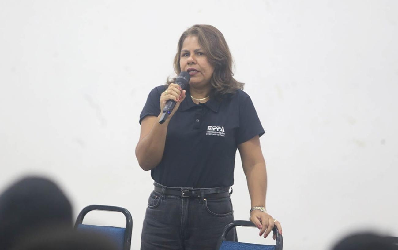 Érica Almeida representando o Ministério Público na palestra. "Em qualquer trabalho, fazemos o nosso melhor, mas com alimento, o cuidado é redobrado. Não é só qualidade, é saúde. Quem trabalha com açaí sabe que lida com vidas, e a Vigilância Sanitária do município ajuda a garantir isso com protocolos e conhecimento para os profissionais que dependem disso."