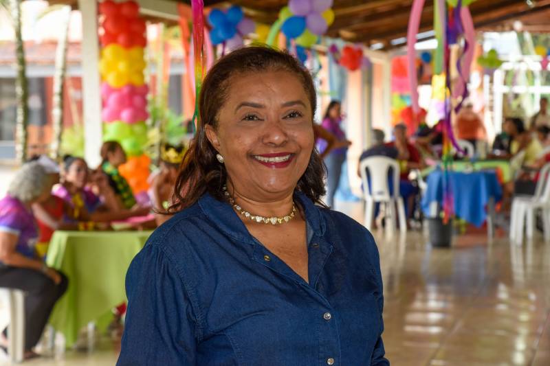A secretária da SEMCAT, Francy Pereira, muito feliz na festa no ILPI.Segundo a secretária da secretaria municipal de Cidadania, Assistência Social e Trabalho (SEMCAT), Francy Pereira, a festa é de extrema importância para celebrar este momento. “Esta festa é muito especial para as nossas crianças e para os nossos idosos, para que eles possam aproveitar este momento de alegria”, afirmou.