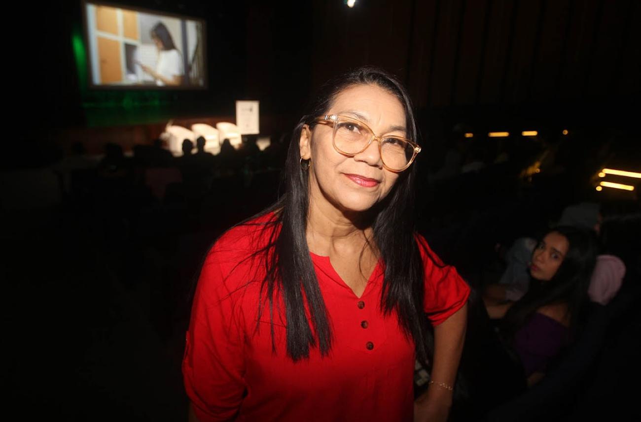 A participante da noite, Delma Moraes. Para os participantes, a experiência vai além da exibição. A inspetora escolar Delma Moraes ressaltou que cada sessão provoca novos olhares sobre a realidade.