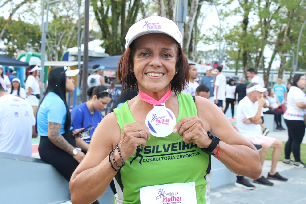 A felicidade da corredora Márcia Castro em conquistar o primeiro lugar.Entre as participantes, quem conquistou o 1.º lugar da prova foi Márcia Castro, de 55 anos, pedagoga. Nascida em Vitória do Jari, no Amapá, e atualmente moradora de Belém, ela contou que começou a correr aos 47 anos, motivada pelo desejo de ter uma vida mais ativa.