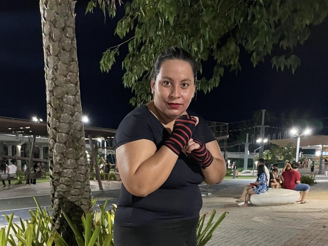 Participante das atividades, Amanda Moreira.Uma das participantes das atividades, Amanda Moreira, ressaltou que a prática das artes marciais vai além do condicionamento físico. “O que me motivou a praticar artes marciais foi a busca por bem estar e saúde. Quem treina artes marciais perde mais calorias do que em um treino de cardio comum. Outro ponto importante é a defesa pessoal. Saber se defender não é um luxo, é uma necessidade, principalmente diante do aumento da violência contra as mulheres”, disse.