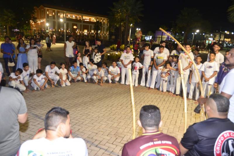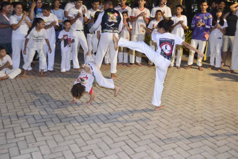 A noite contou com apresentações conduzidas por academias e grupos da região. O grupo Movimento da Ginga levou ao público a capoeira, prática que une luta, música e tradição cultural. No boxe, a equipe Tigres Fight apresentou técnicas de treino e movimentos característicos da modalidade.