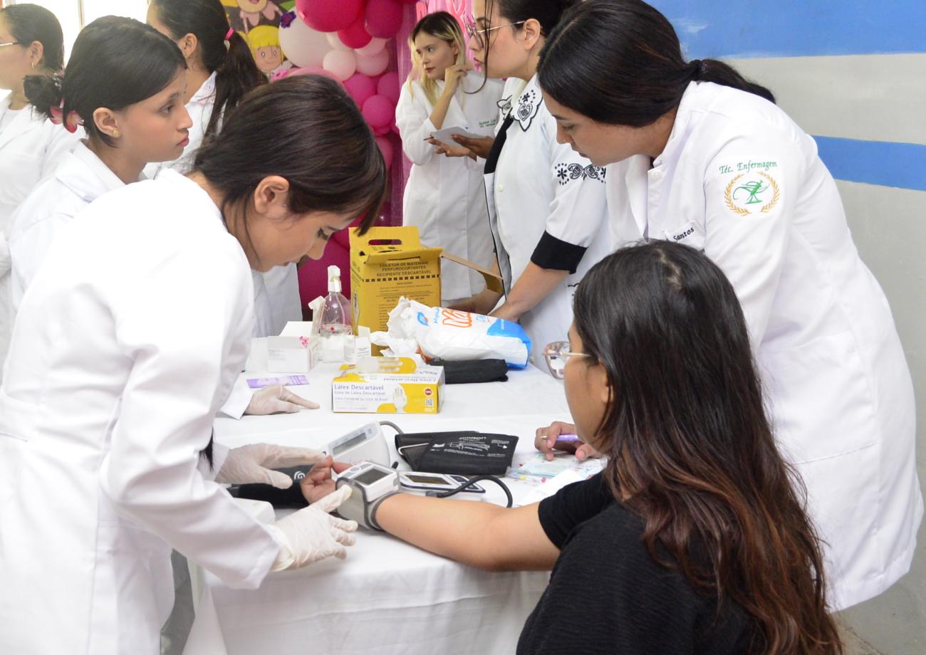 A ação também abriu espaço para o diálogo intergeracional, com a realização de uma atividade sobre projeto Fluxo com Respeito, voltada para adolescentes da rede de ensino. O momento foi dedicado à orientação, escuta e conscientização, promovendo informação de forma acolhedora e contribuindo para a quebra de tabus e o fortalecimento do respeito em relação a menstruação.