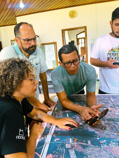Mapeamento sendo realizado em Ananindeua.A Prefeitura de Ananindeua deu mais um passo importante na construção de políticas públicas voltadas à prevenção de desastres. No último sábado(11), no Conjunto Julia Seffer, equipes da Secretaria de Enfrentamento às Mudanças Climáticas (SEMC+), da Secretaria Municipal de Proteção e Defesa Civil (SEPDEC) e da Universidade Federal Rural da Amazônia (UFRA) realizaram uma ação de mapeamento participativo com lideranças comunitárias da região sul do município.